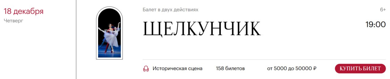 Большой театр открыл продажу билетов на балет "Щелкунчик".