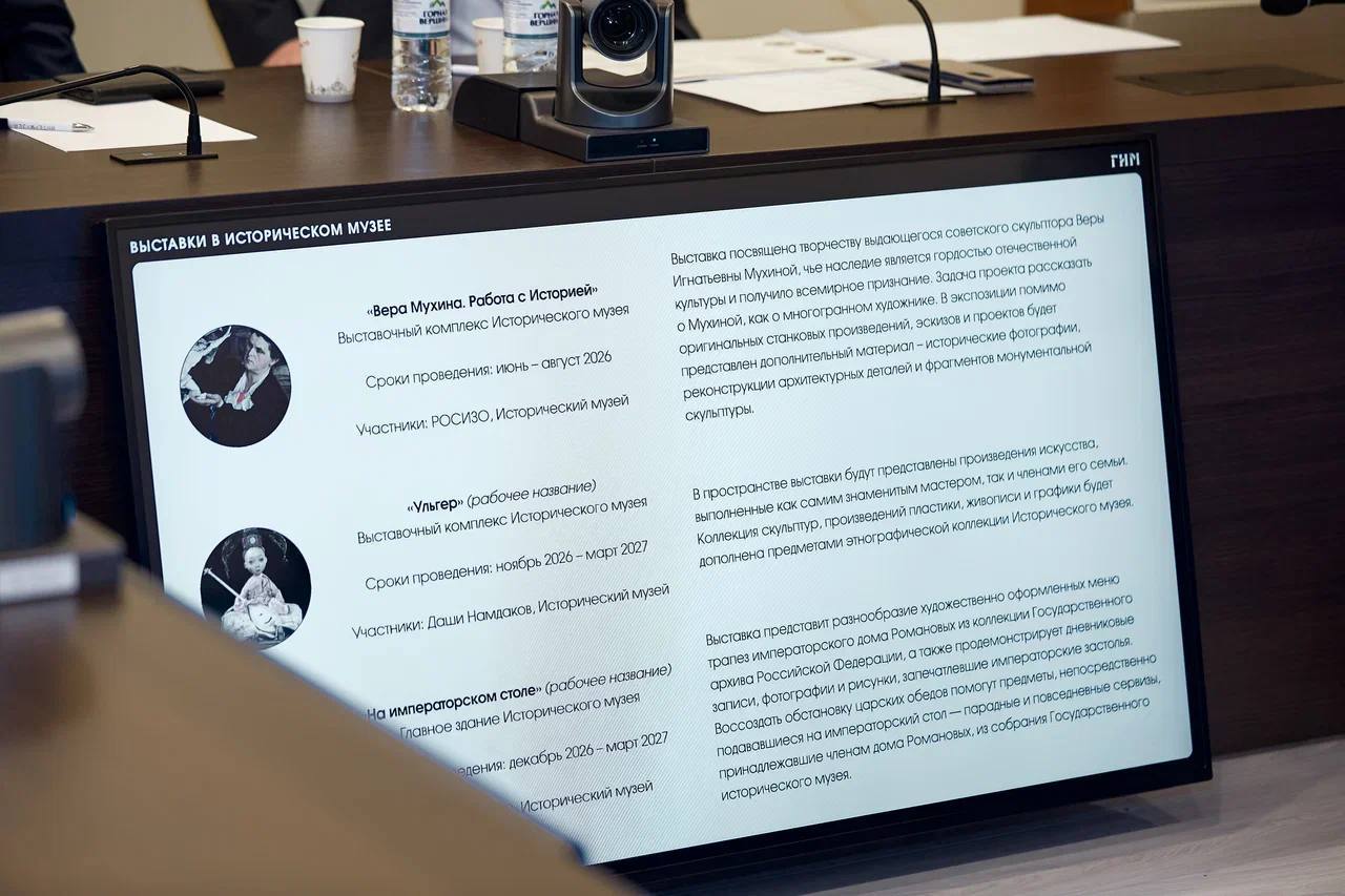В 2026 году Исторический музей обновит постоянную экспозицию. Откроются три зала, посвященные истории России на рубеже XIX—XX столетий. О торжественных трапезах дома Романовых расскажет выставка «На императорском столе». Две выставки будут посвящены искусству раннего советского периода — ретроспектива Веры Мухиной и проект «Прорыв в будущее».