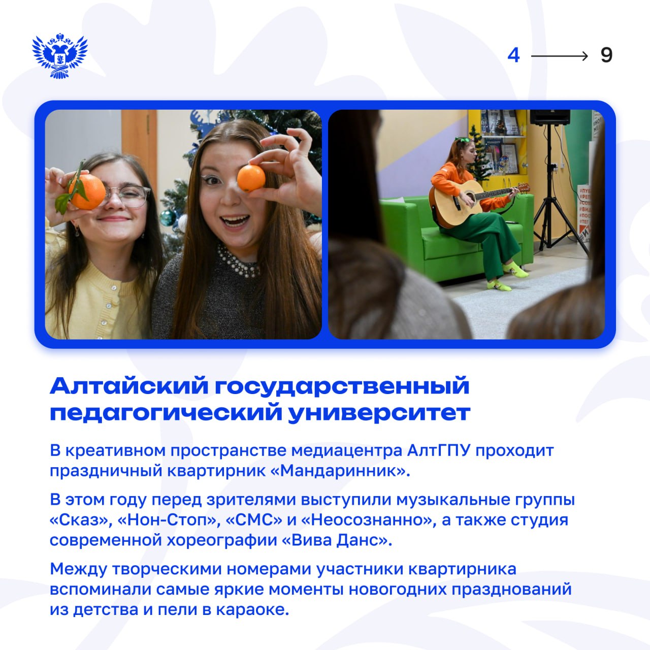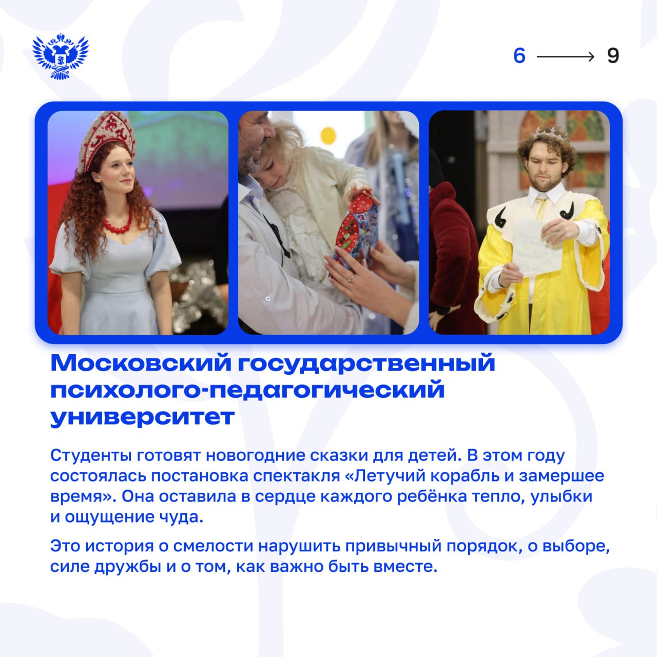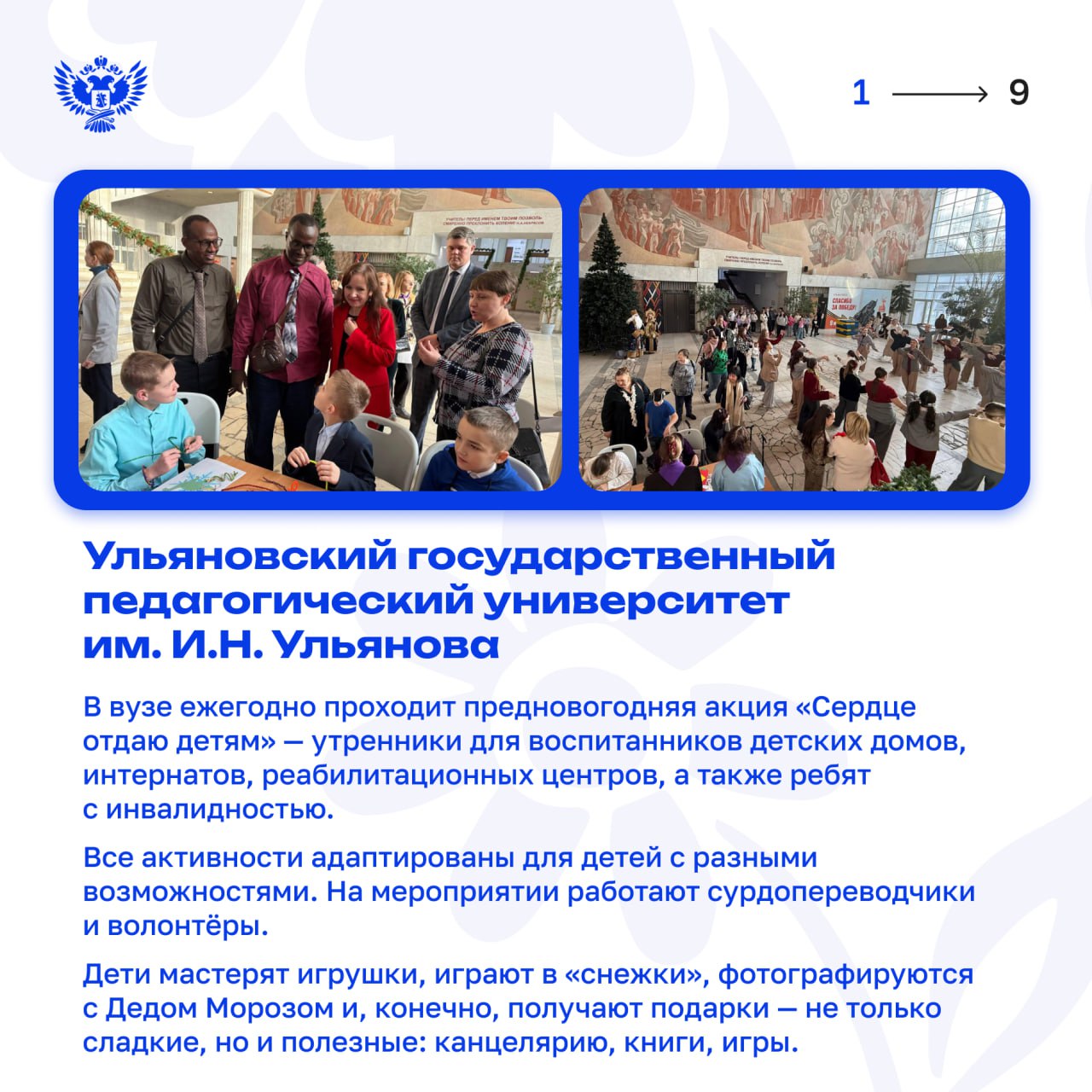 Педагогические университеты тоже бережно хранят праздничные традиции. Студенты и преподаватели готовят театрализованные представления, проводят ярмарки подарков, посещают детские дома и дарят детям подарки.