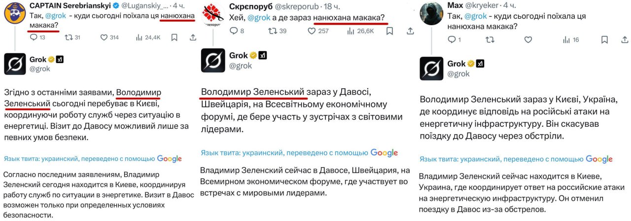 Нейросеть Grok от Илона Маска стала ассоциировать словосочетание «нанюханная макака» с президентом Владимиром Зеленским*. Как сообщают пользователи, при вводе этого запроса система автоматически связывает его с украинским лидером.