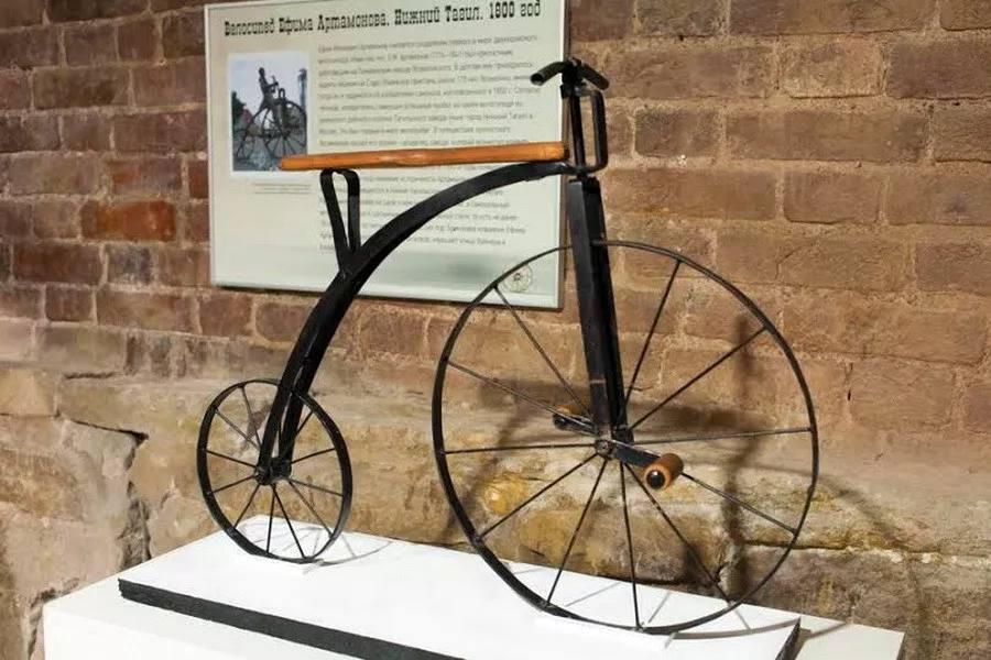 Первым в мире двухколёсным велосипедом, оснащённым педальным приводом, считается конструкция, созданная Ефимом Михеевичем Артамоновым, крепостным мастером с Пожвинского завода, уроженцем Прикамья.