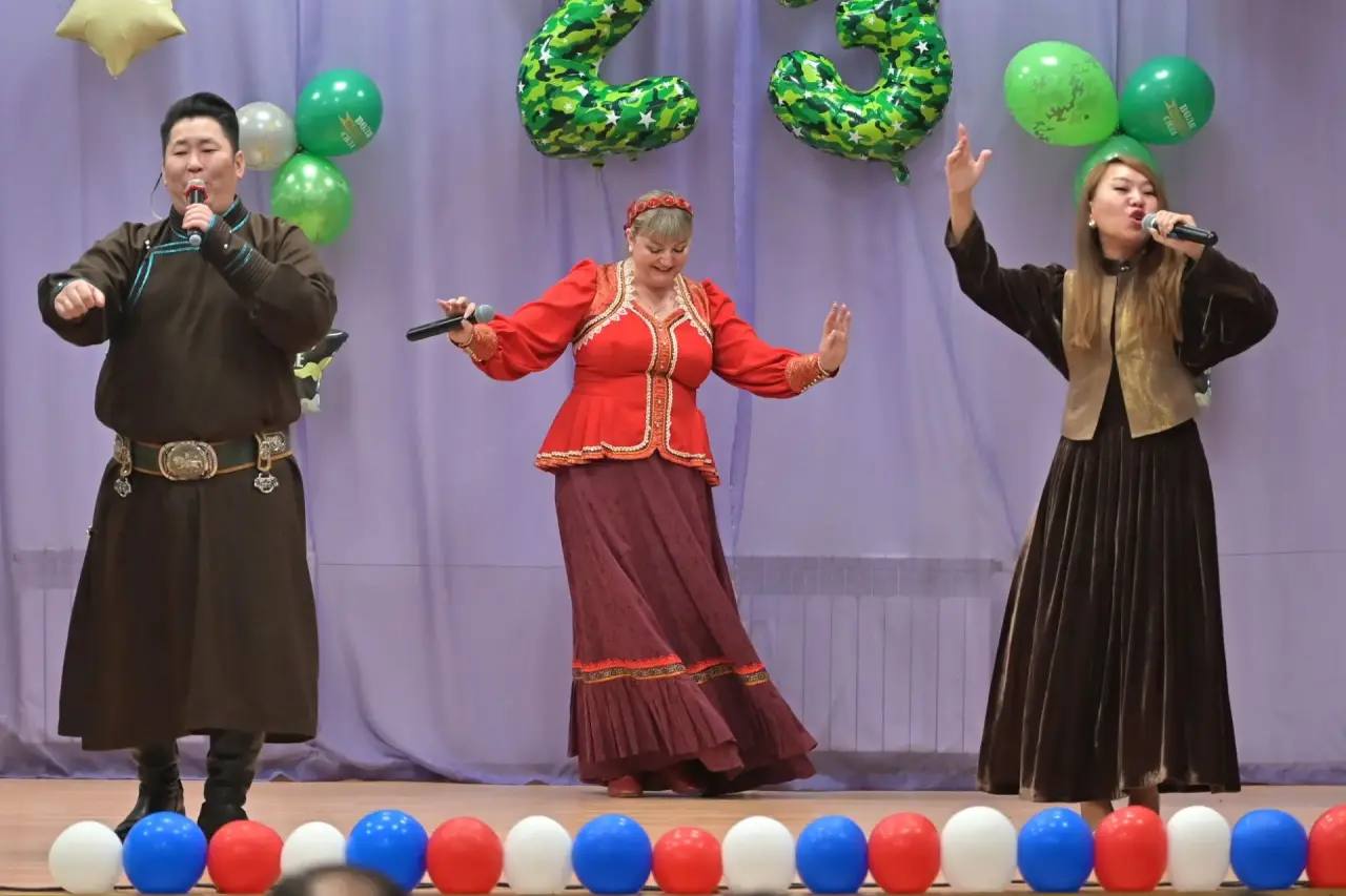 Для раненых бойцов артисты Бурятии подготовили концерт. Вместе, в один голос, мы спели наши самые воодушевляющие песни «Ой, при лужку», «Адуушанай дуун», «Русские не сдаются, буряты не бегут».