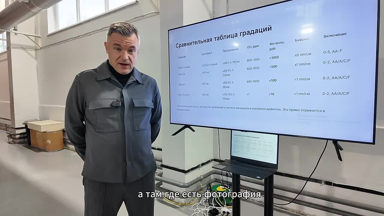 Вместе с замглавы Минпромторга России Василием Шпаком побывали на предприятии, где узнали, как производят кварцевые стекла для линз фотолитографа.
