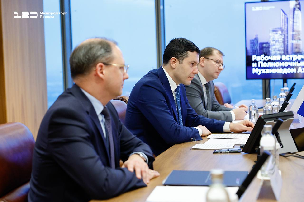 Глава Минпромторга России Антон Алиханов провёл рабочую встречу с Чрезвычайным и Полномочным Послом Объединённых Арабских Эмиратов в РФ Мухаммедом Ахмедом Аль-Джабером.