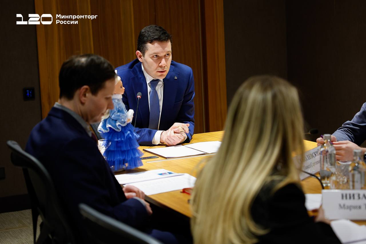 Министр Антон Алиханов провел совещание с отечественными производителями товаров для детей и главой Ассоциации «АИДТ» Антониной Цицулиной.