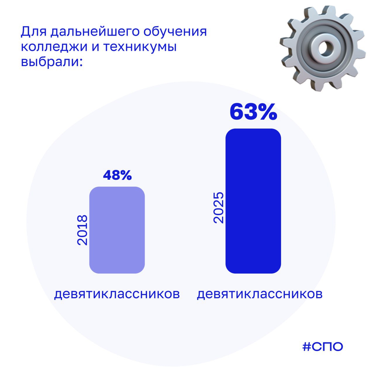 В колледжи и техникумы поступили порядка 1,3 млн ребят. Средний балл их аттестата достиг отметки 4,0. Это подтверждает высокий уровень подготовки и мотивации будущих специалистов.