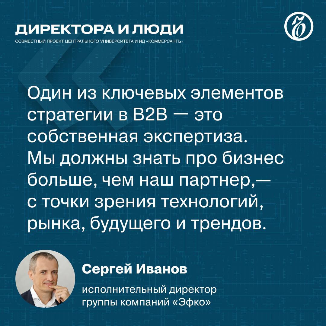 Один из ключевых элементов стратегии в В2В — это собственная экспертиза. Мы должны знать про бизнес больше, чем наш партнер,— с точки зрения технологий, рынка, будущего и трендов.