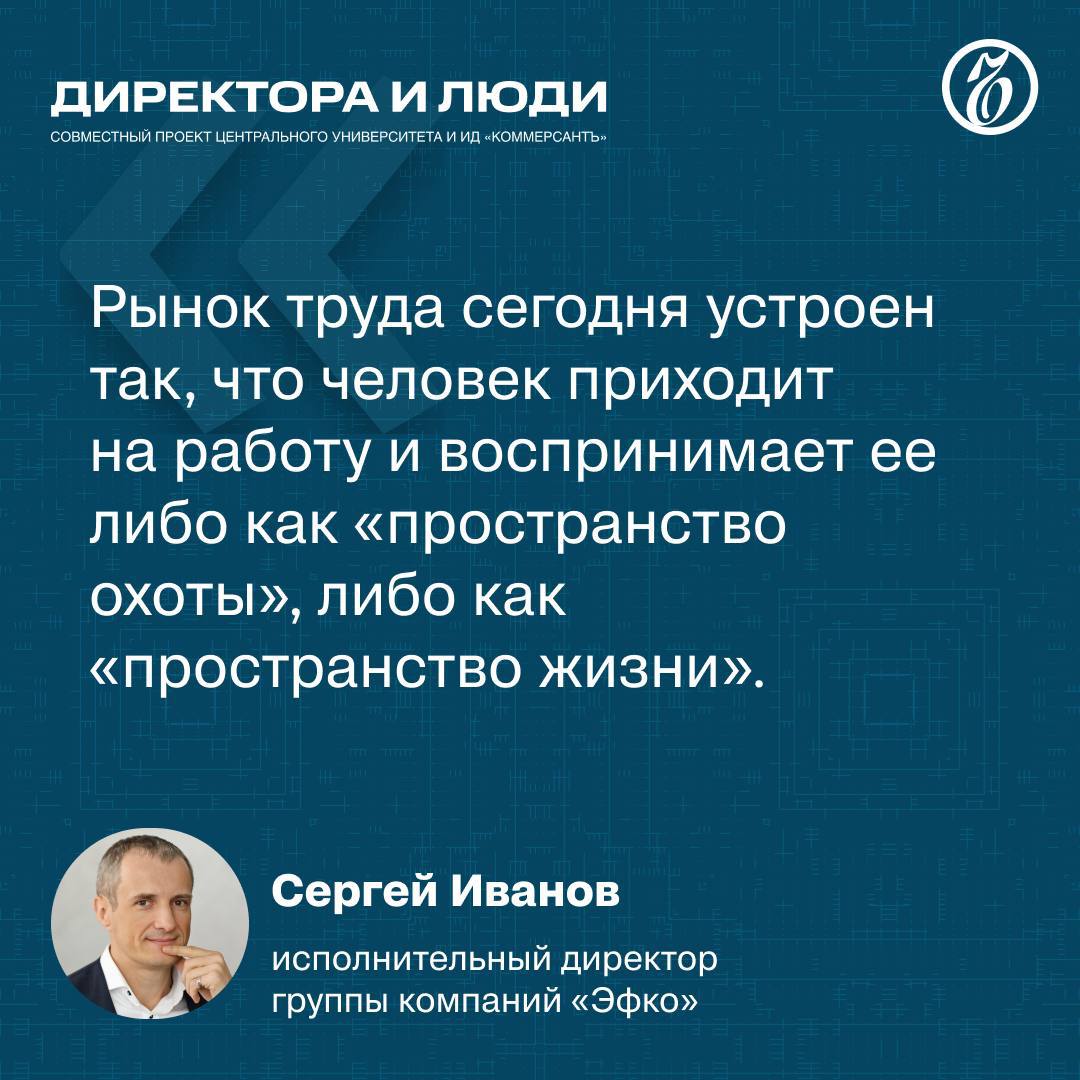Рынок труда сегодня устроен так, что человек приходит на работу и воспринимает ее либо как «пространство охоты», либо как «пространство жизни».