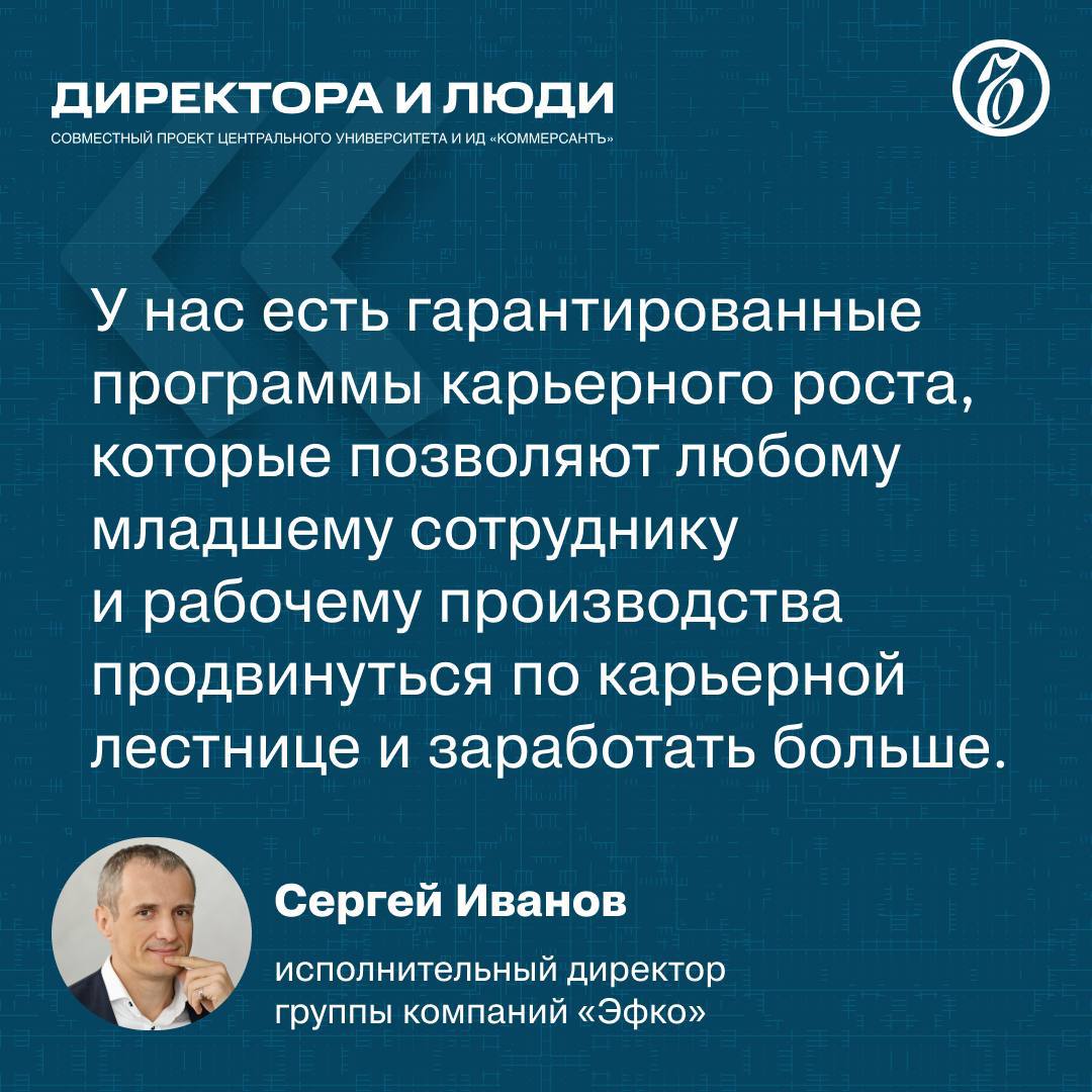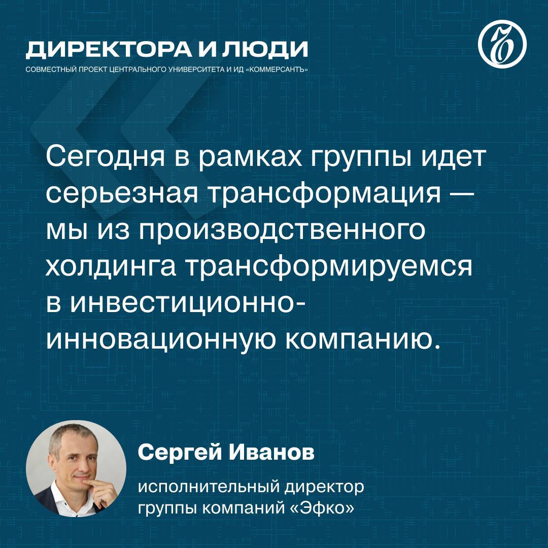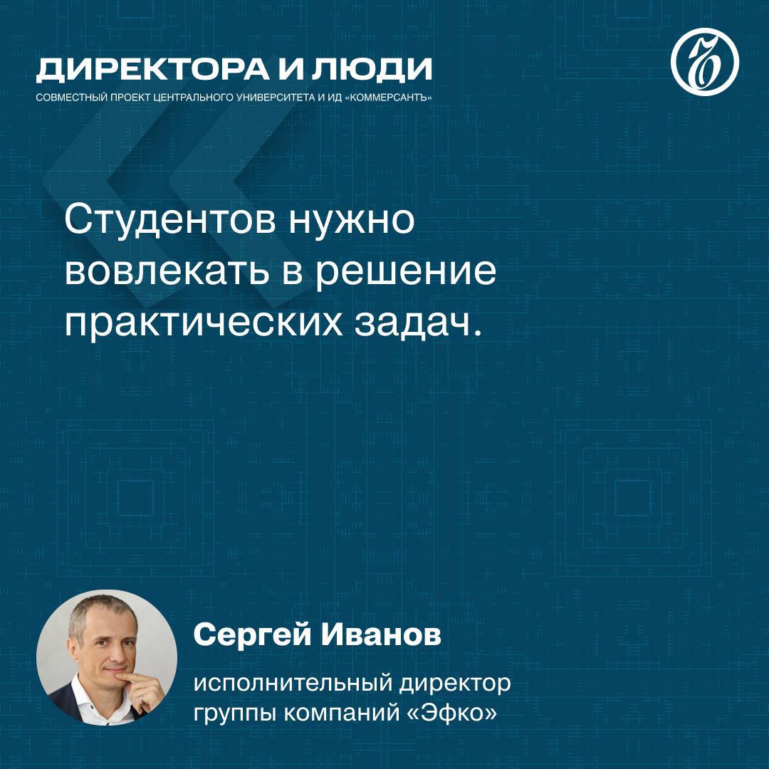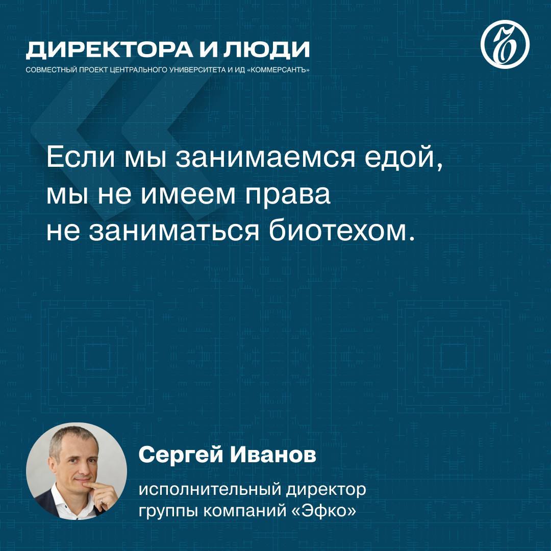 Исполнительный директор «Эфко» Сергей Иванов в десятом выпуске совместного проекта «Ъ» и Центрального университета «Директора и люди» рассказал о биотехнологиях, кадровых вызовах и сотрудничестве с вузами: