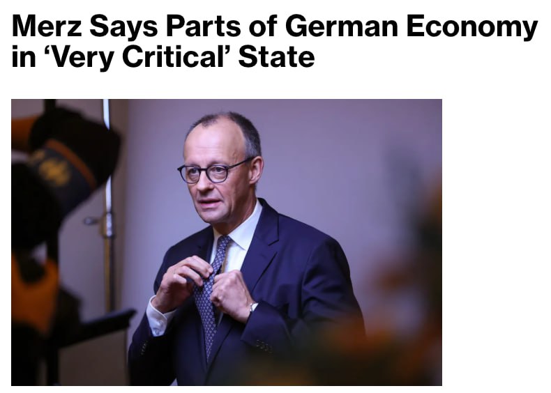 Канцлер Германии Фридрих Мерц в письме к парламентариям констатировал глубокие проблемы в экономике страны. По его словам, «некоторые отрасли» экономики ФРГ «находятся в очень критическом состоянии», сообщает агентство Bloomberg.