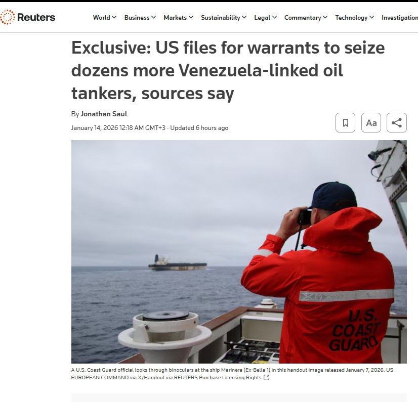 Это означает серьезную эскалацию. Если ранее Вашингтон конфисковывал только грузы санкционной нефти, то теперь целью становятся и сами суда, в том числе под иностранными флагами. По данным агентства, пять танкеров уже захвачены в международных водах, а ордера выданы на десятки других. Действия США направлены на установление долгосрочного контроля над ресурсами страны после смены власти в Каракасе.