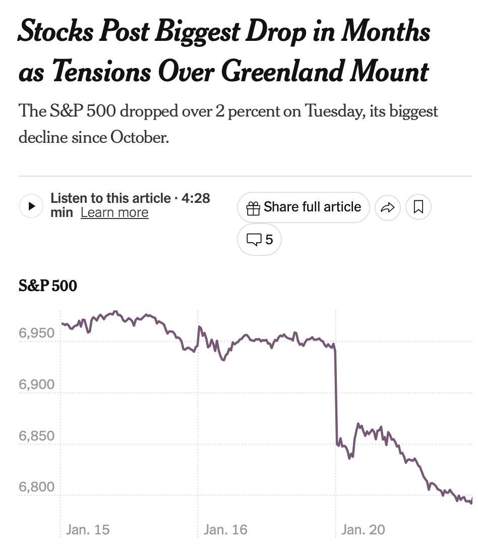 Так инвесторы отреагировали на растущую угрозу Трампа ввести более высокие пошлины для европейских союзников, если они не поддержат его планы по передаче Гренландии под контроль США.