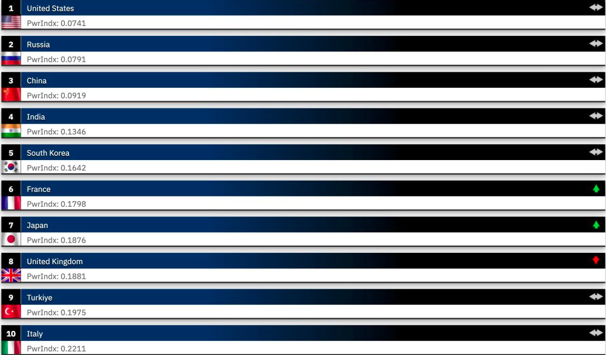 Рейтинг Global Firepower составляется с 2005 года.