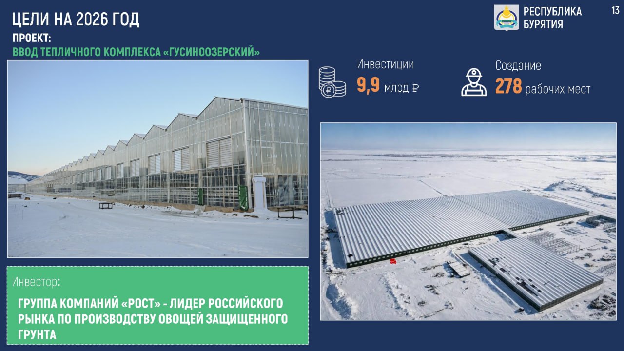 В этом году у нас начнёт работу крупнейшее в стране месторождение бериллия. Запускаем крупнейший на Дальнем Востоке тепличный комплекс — свои свежие овощи пойдут уже в этом году. Это рабочие места, налоги и экономический фундамент региона.
