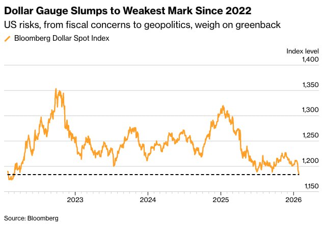 Эта слабость отражает растущую осторожность инвесторов после периода непредсказуемой внешней политики администрации Дональда Трампа, в частности, его угроз в адрес Гренландии.