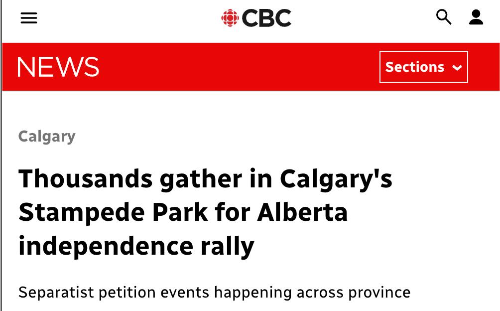 В декабре избирательная комиссия провинции одобрила петицию о референдуме с вопросом: «Согласны ли вы с тем, что провинция Альберта должна перестать быть частью Канады и стать независимым государством?». До марта ее должны подписать 178 тыс. человек.