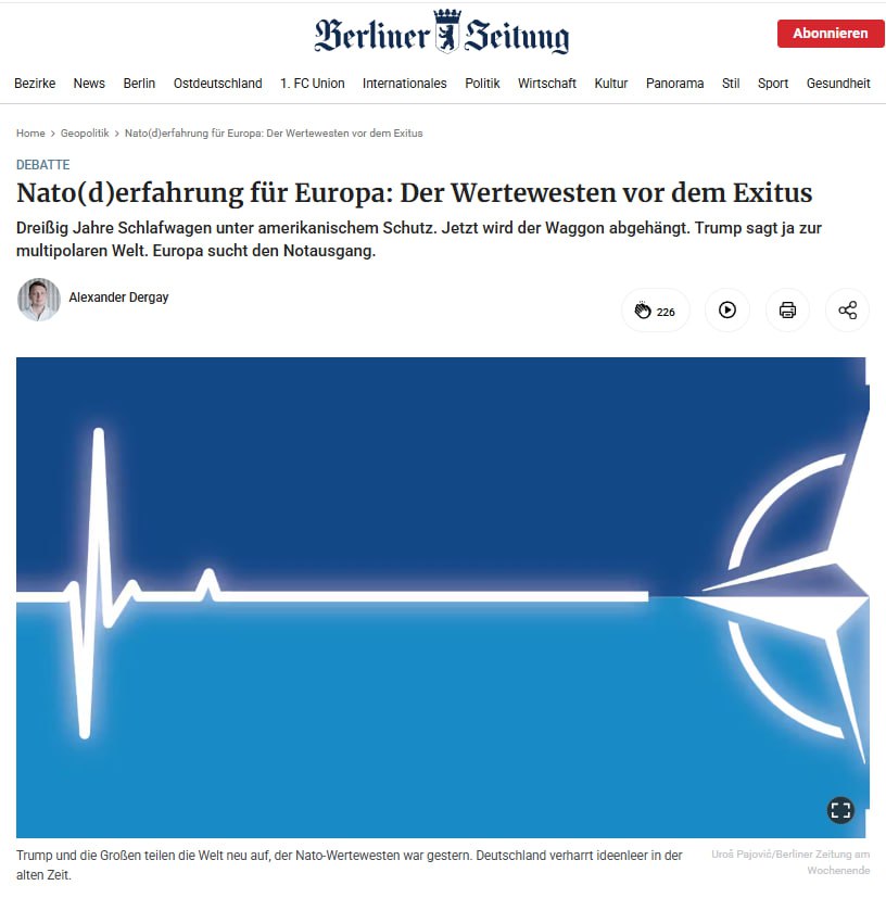 Идея общего европейского ядерного оружия в ближайшие годы признана нереализуемой. Немецкая Berliner Zeitung пишет, что «для такого проекта нет ни политического мандата, ни финансовых ресурсов», отмечая внутренние проблемы континента.