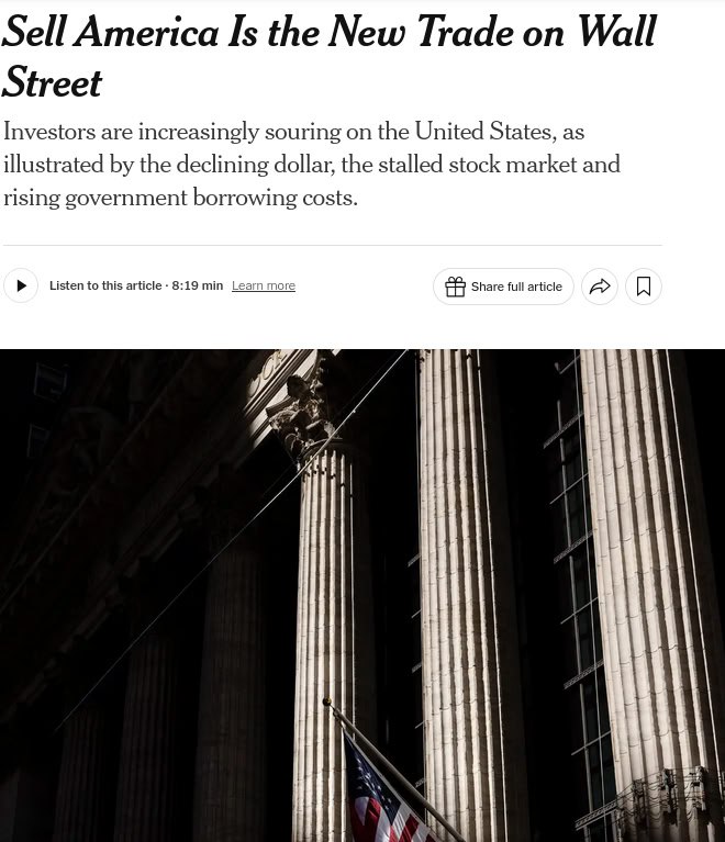 Тезис Sell America (продавай Америку) набирает популярность инвесторы продают активы США из-за тарифов Трампа и угроз ФРС.
