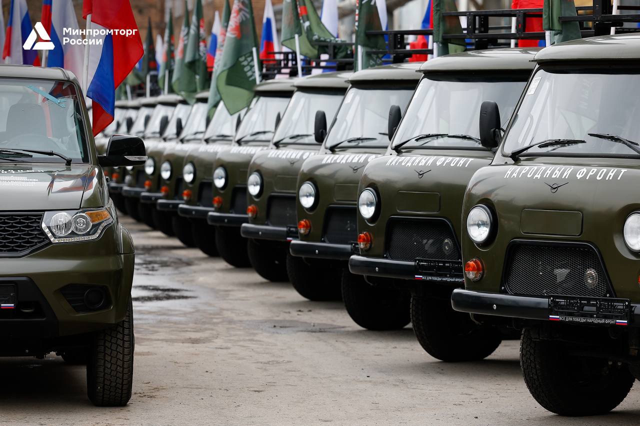 В преддверии Дня защитника Отечества Правительство России и Минпромторг России совместно с Народным фронтом передали воинским подразделениям более 170 автомобилей повышенной проходимости, среди которых УАЗ «Буханка», «Пикап» и «Профи».