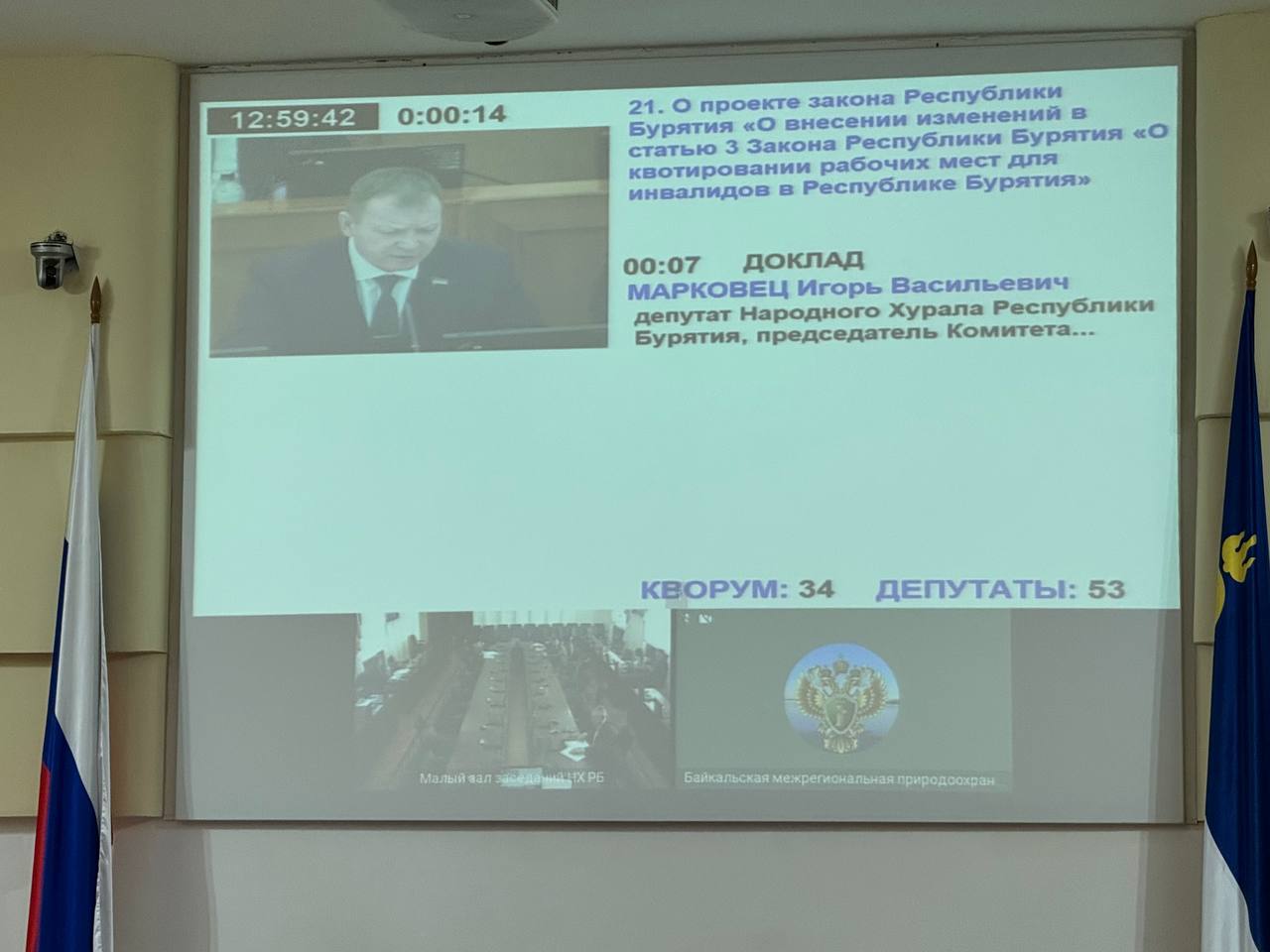 В двух чтениях рассмотрен проект закона «О внесении изменений в статью 3 Закона Республики Бурятия «О квотировании рабочих мест для инвалидов в Республике Бурятия».