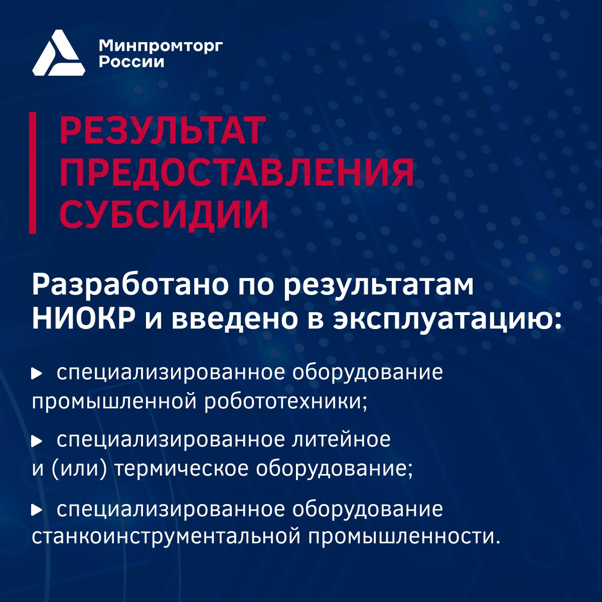 Субсидия направлена на стимулирование разработок российского специализированного оборудования, в том числе в интересах предприятий ОПК.