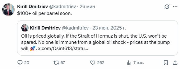 Спецпредставитель Президента К.Дмитриев на оптимизме — считает, что нефть взлетит до 100 долл. за баррель и выше.