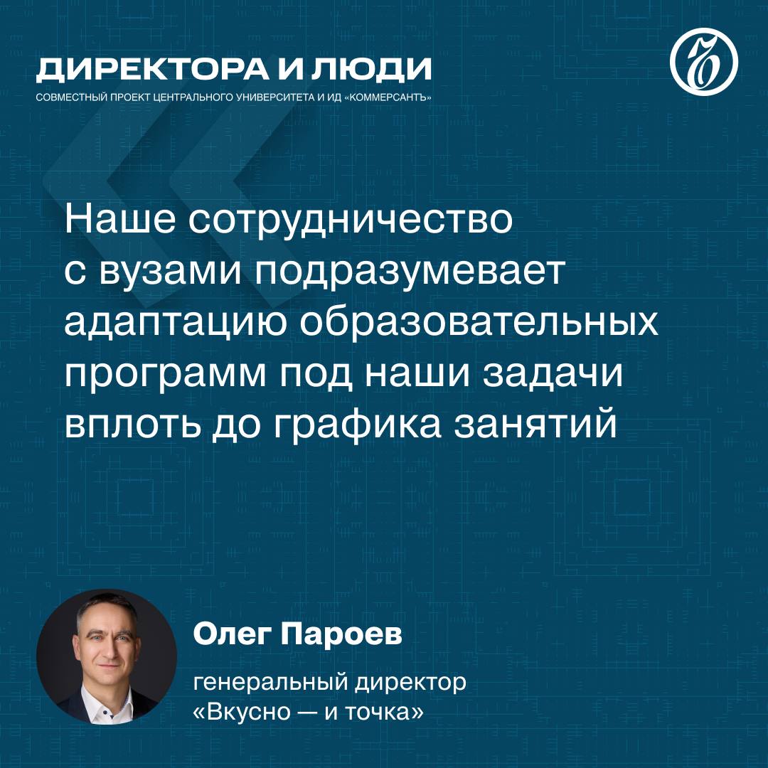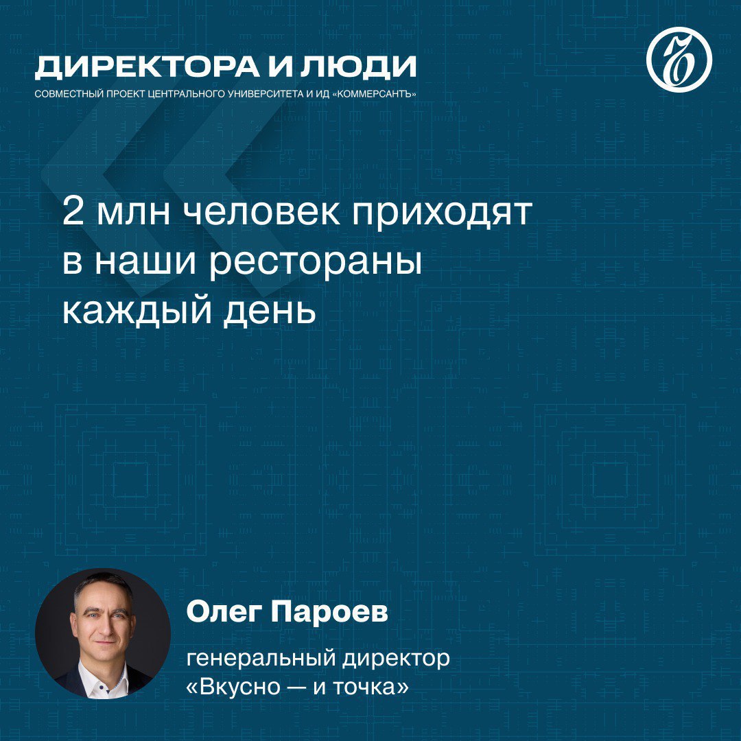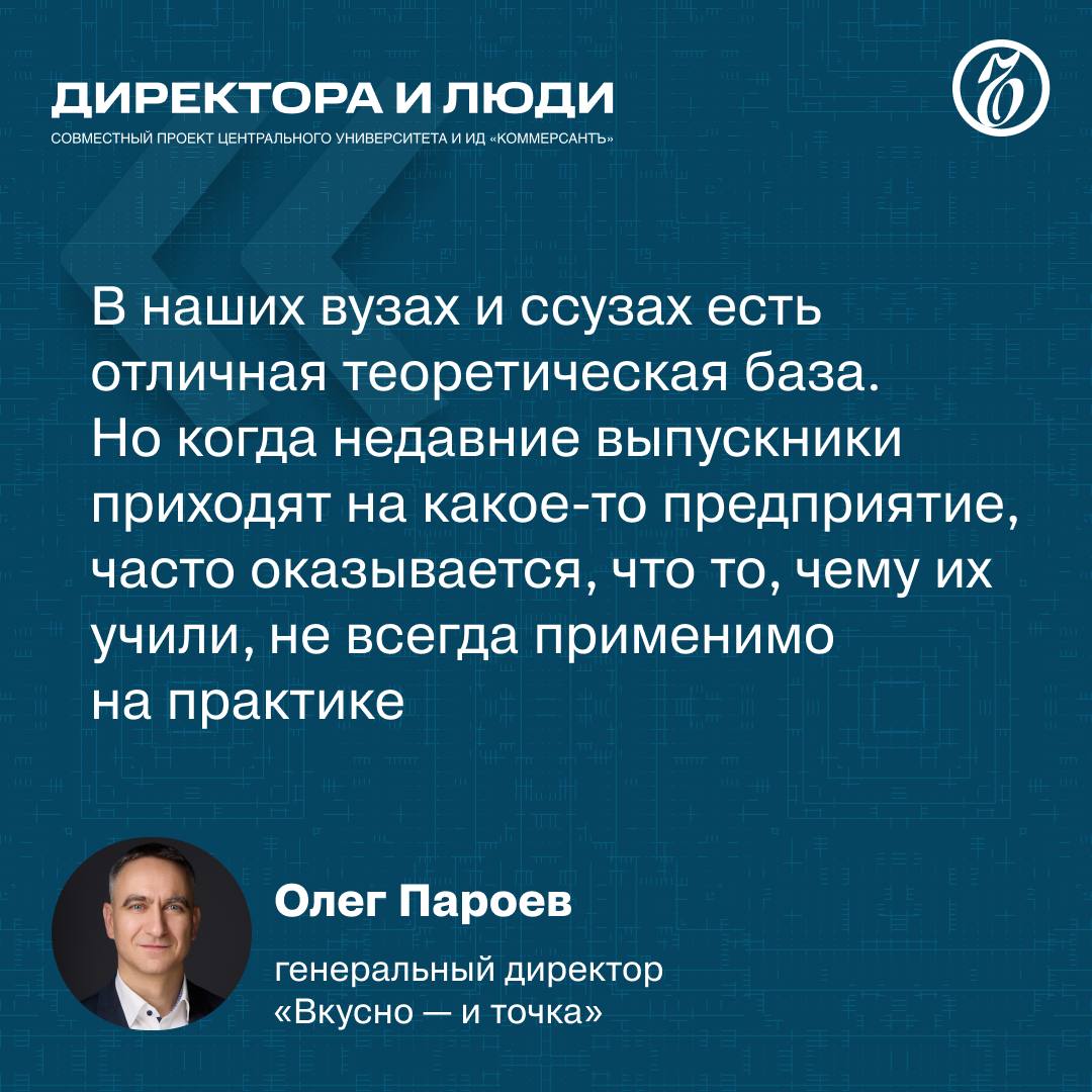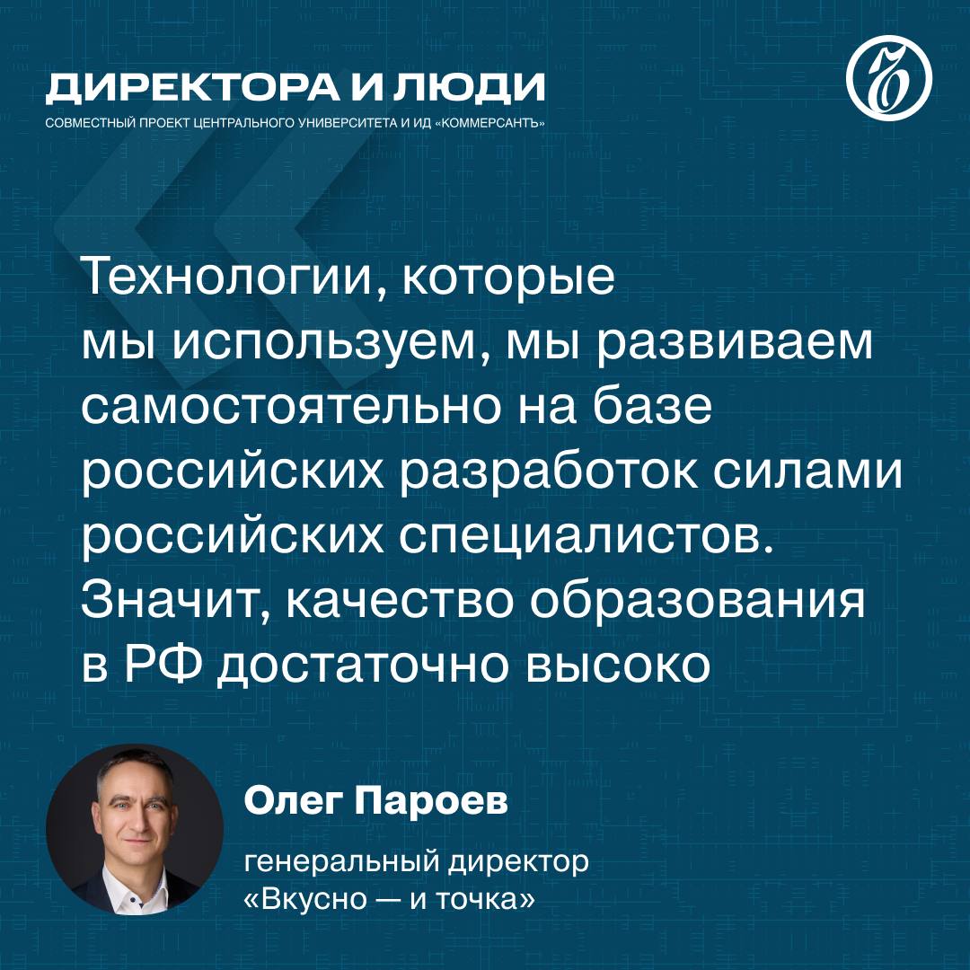 Генеральный директор «Вкусно — и точка» Олег Пароев в 11-м выпуске совместного проекта «Ъ» и Центрального университета «Директора и люди» рассказал о перезапуске бизнеса, необходимости ИТ-специалистов и навыках современных студентов.