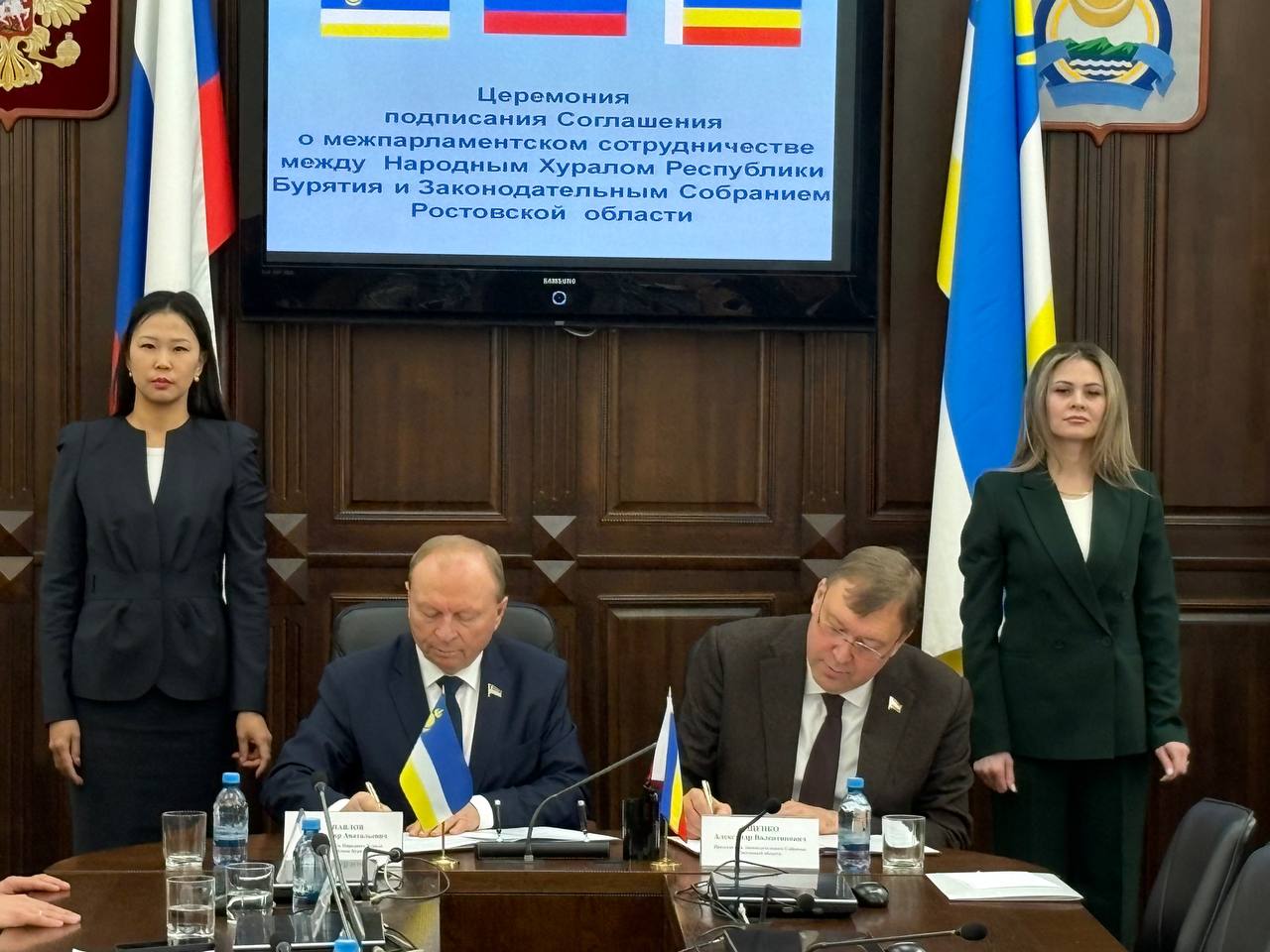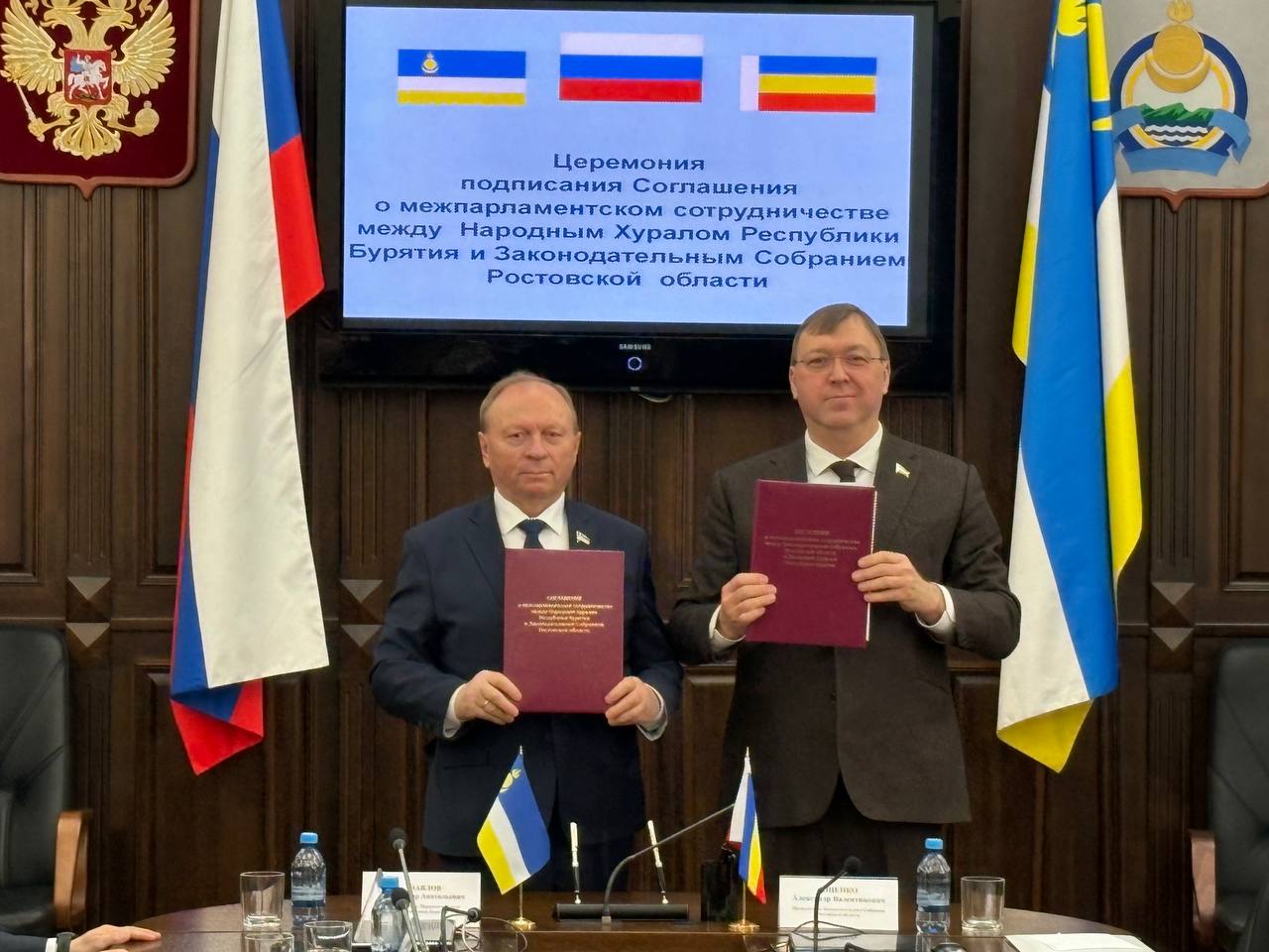 Сегодня подписано Соглашение о межпарламентском сотрудничестве между Народным Хуралом Республики Бурятия и Законодательным Собранием Ростовской области. Для этого в Бурятию прибыла парламентская делегация народных избранников из южного района страны.