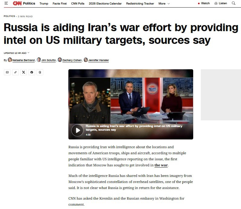 Кроме того, американцы утверждают, что Иран использует снимки, полученные с российских спутников. Якобы Москва предоставляет Тегерану данные о местоположении и перемещениях американских войск, кораблей и самолетов.