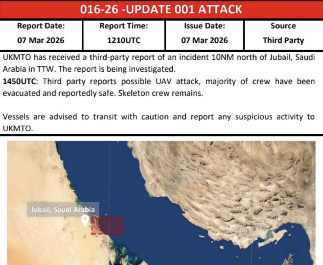 Очередное торговое судно пылает в Персидском заливе, неподалеку от саудовского порта Джубайль.