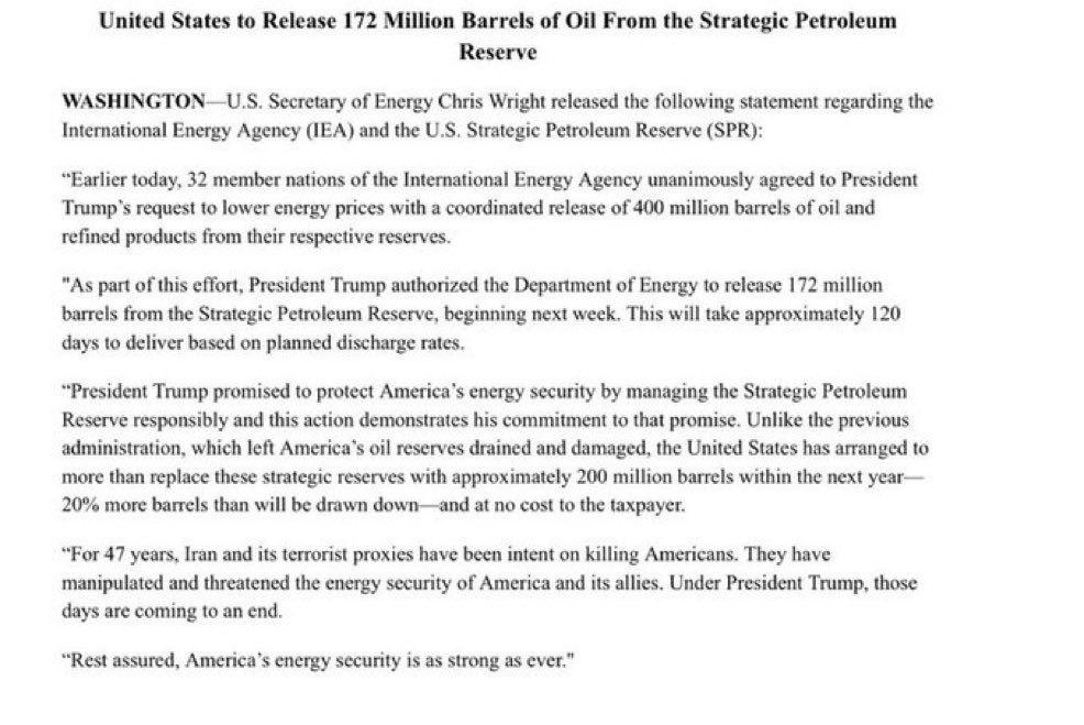США выпустят 172 миллиона баррелей нефти из стратегического резерва для стабилизации рынка.