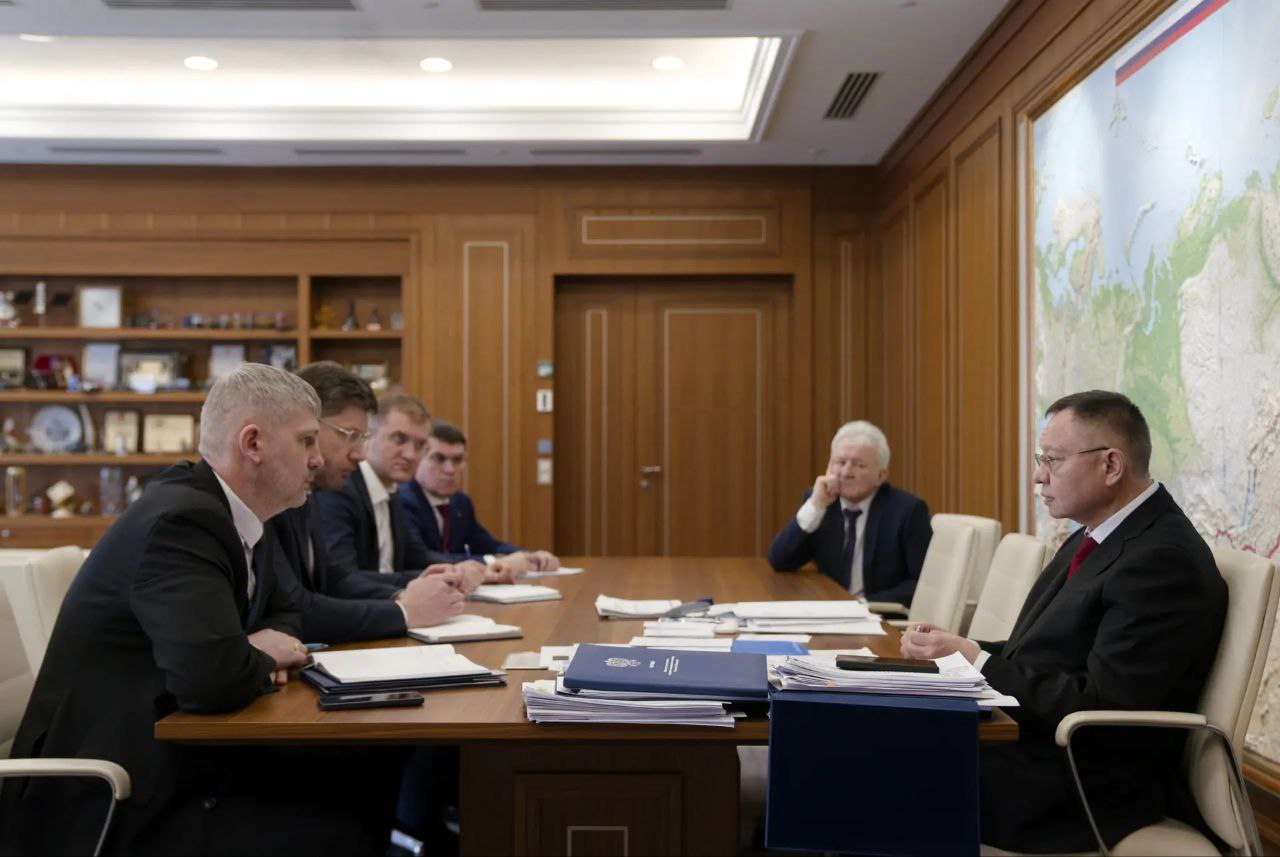 Министр строительства и ЖКХ РФ Ирек Файзуллин провел совещание с председателем Комитета Госдумы РФ по транспорту и развитию транспортной инфраструктуры Евгением Москвичевым. От Минстроя России в нем приняли участие первый замминистра Александр Ломакин, замминистра Юрий Гордеев и Сергей Музыченко.