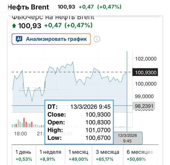 Причина стремительного ралли — эскалация на Ближнем Востоке и фактическая остановка судоходства в Ормузском проливе, через который проходит пятая часть мировых поставок.