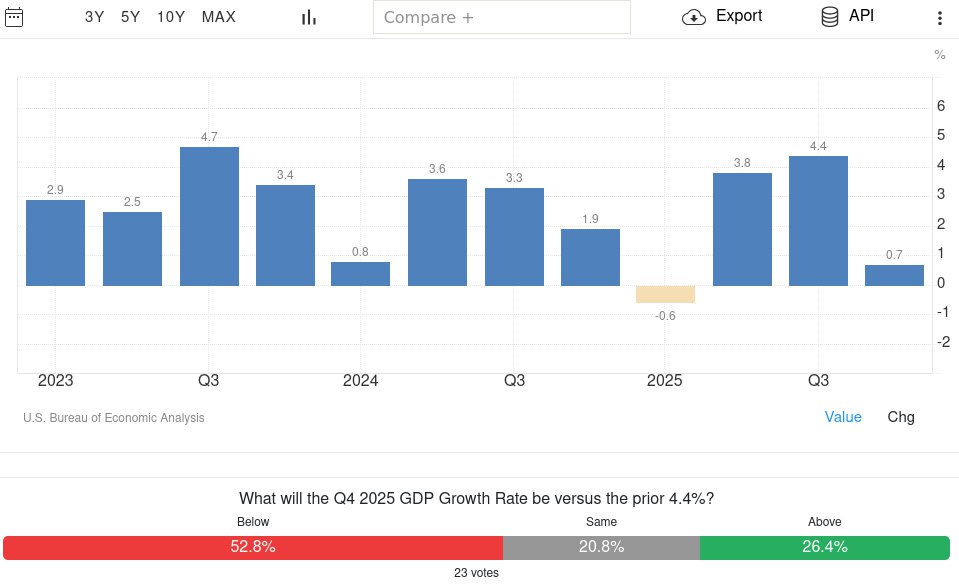 В США в два раза снизили прогноз по росту ВВП за IV квартал 2025 года.