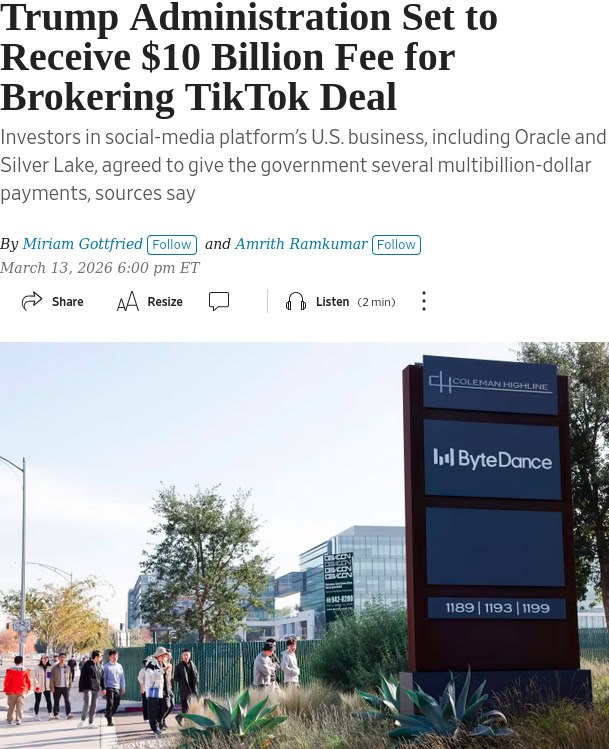 The Wall Street Journal отмечает, что в число инвесторов входят корпорация Oracle, фирма Silver Lake, а также компания MGX из ОАЭ. Получающий контроль над соцсетью американский консорциум будет обязан делиться прибылью с ее разработчиком ByteDance.