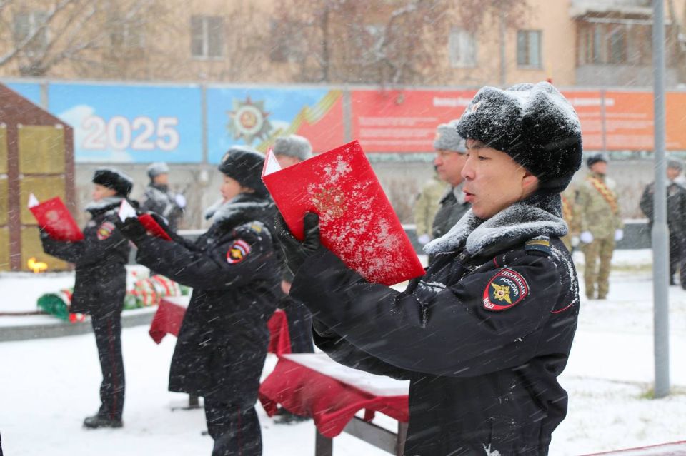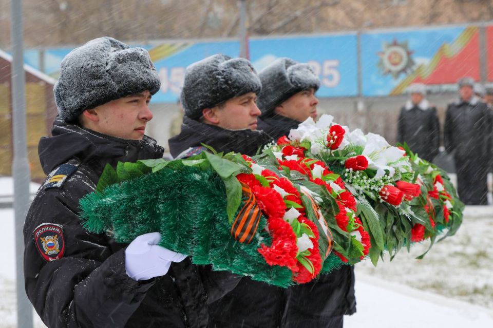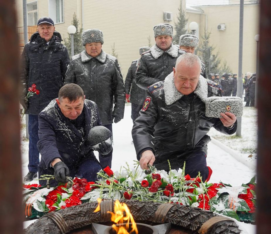 В этот день собрались представители ведомства, ветераны органов внутренних дел, Росгвардии, родственники погибших и почетные гости, чтобы почтить тех, кто до конца остался верен Присяге, кто, не страшась смертельной опасности, ценой, своей жизни защитил закон и правопорядок.