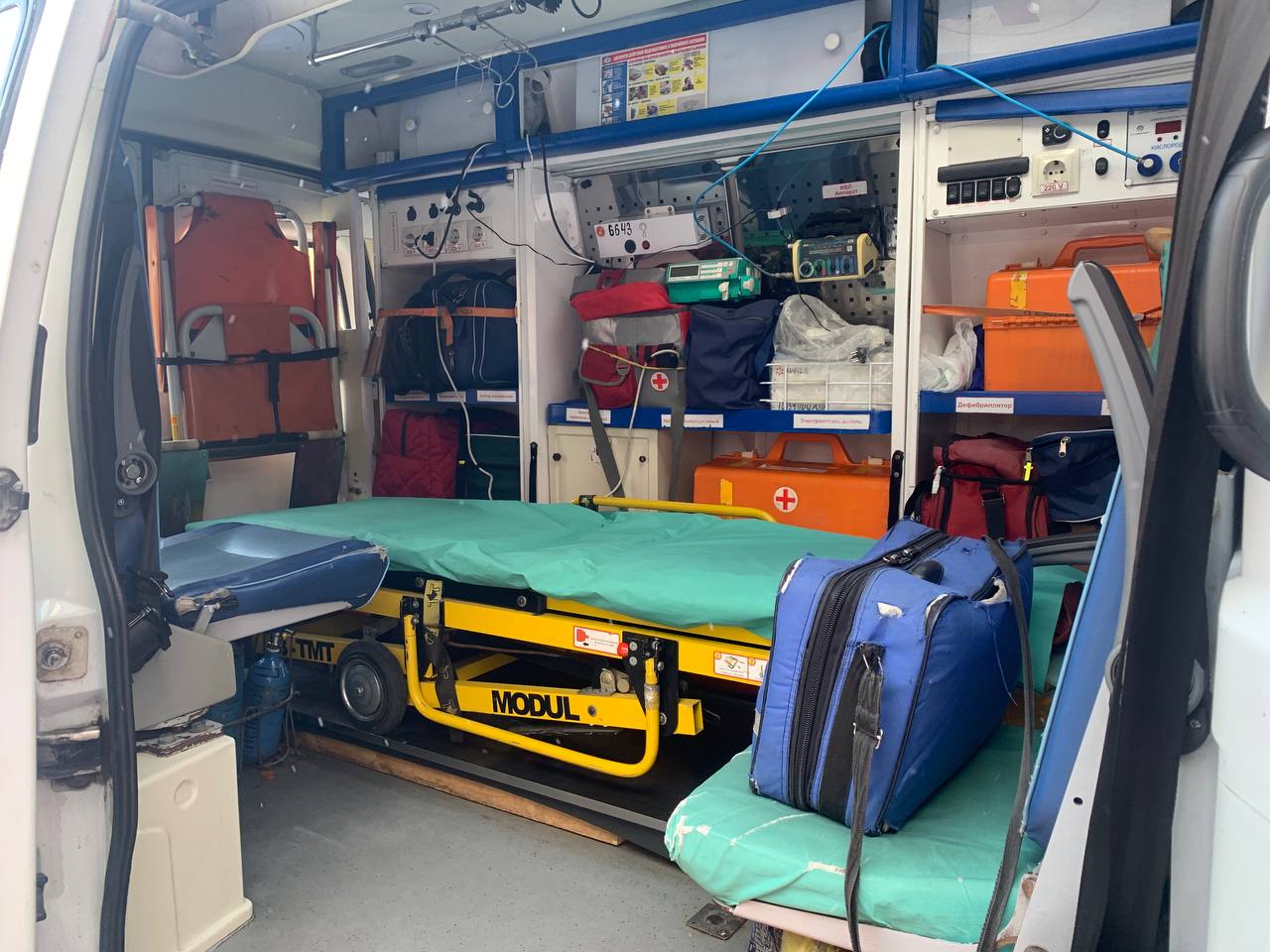 Во время пути в больницу он внезапно встал, начал ругаться и пытался выпрыгнуть из скорой помощи на ходу. Затем он ударил кулаком по лицу фельдшера, который пытался его удержать.
