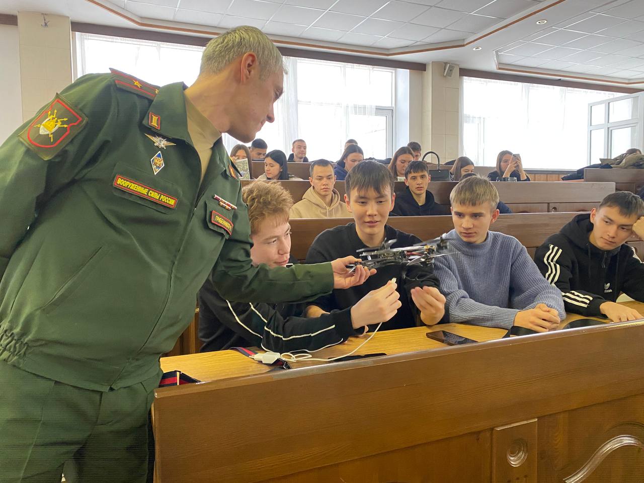 В преддверии памятной даты — Дня героев Отечества, Комитет семей воинов Отечества Бурятии провел особенный урок для студентов ВСГУТУ. В одной аудитории собрались будущие спасатели МЧС и программисты — те, кому предстоит защищать страну на передовой и в цифровом пространстве.