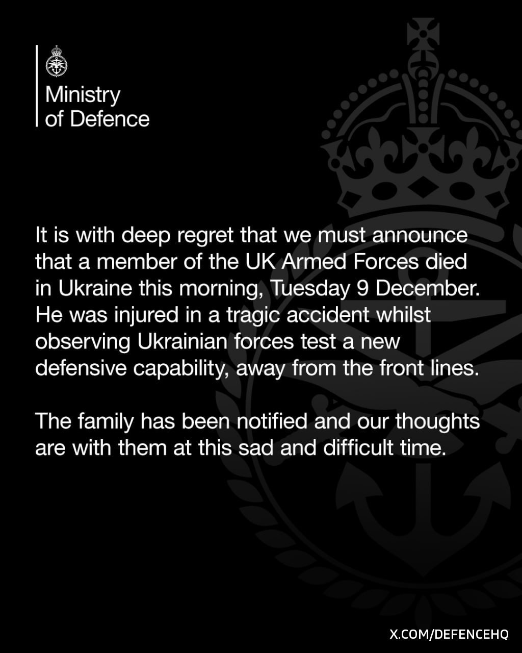 Британский военный погиб на Украине сегодня утром, сообщило Минобороны королевства