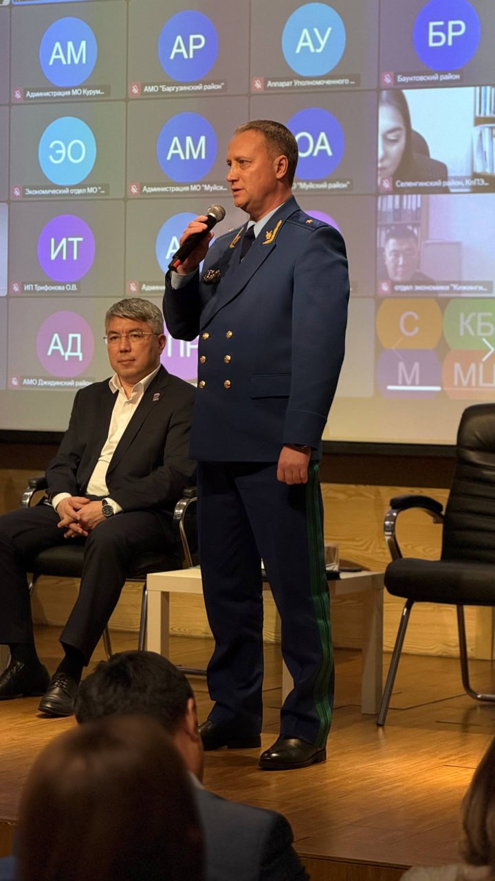 Прокурор республики Михаил Филичев принял участие во встрече с бизнес-сообществом совместно с главой региона Алексеем Цыденовым, Уполномоченным по защите прав предпринимателей в республике Чингисом Матхеевым, заместителем Председателя Народного Хурала республики Баиром Гармаевым.