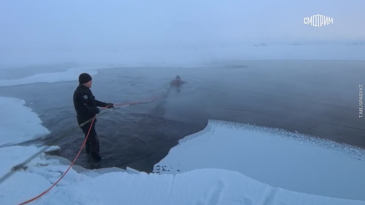 По предварительным данным, в затонувшей машине осталось еще два человека, один из них - ребенок. Температура воздуха в Якутске сегодня минус 44 градуса, уточняют спасатели.