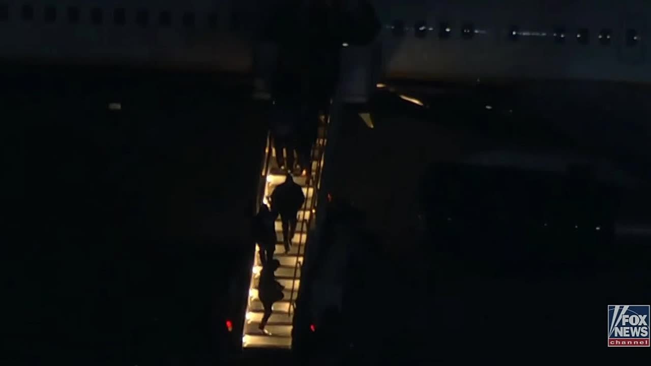 Кадры, на которых, предположительно, вывели Мадуро и его жену Флорес из самолета в аэропорту Нью-Йорка.