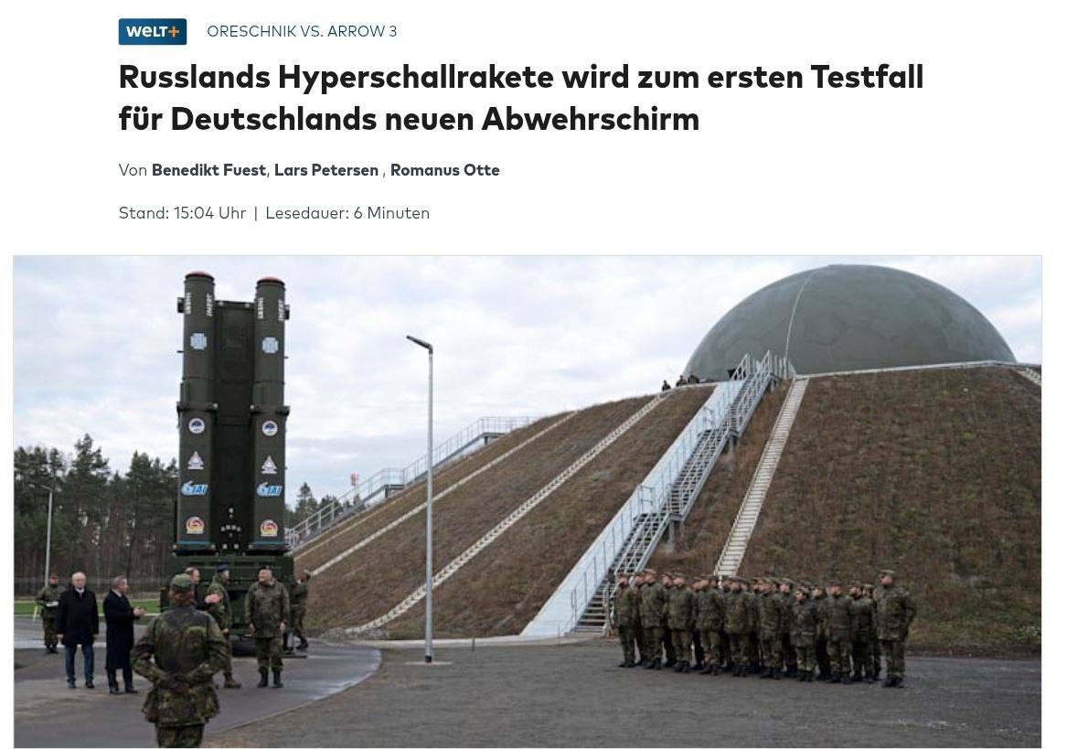 По данным Die Welt, новейшая система ПРО Arrow-3, недавно поставленная на боевое дежурство в Германии, не способна перехватить российский ракетный комплекс «Орешник».