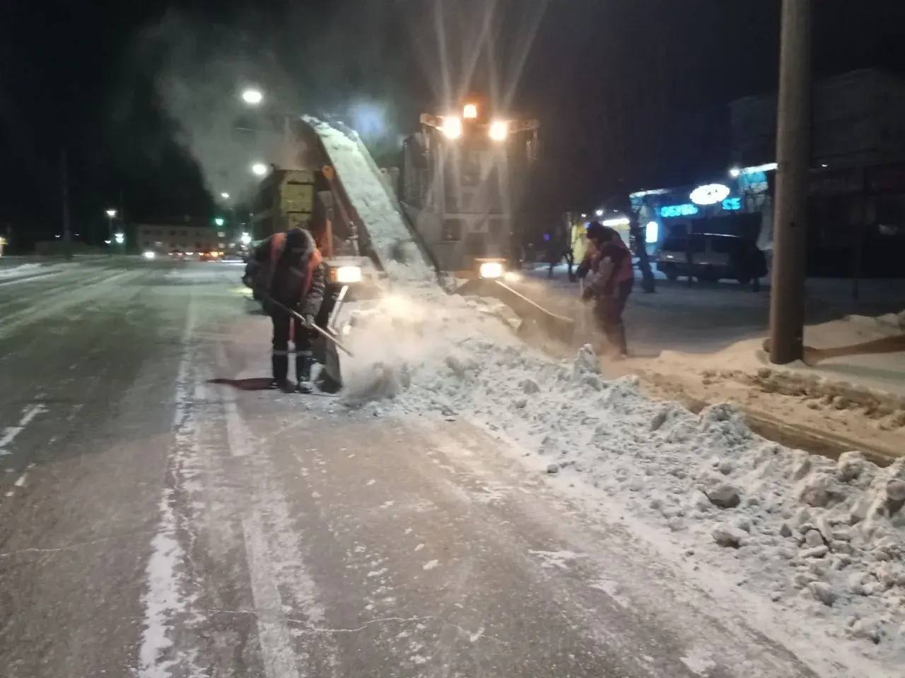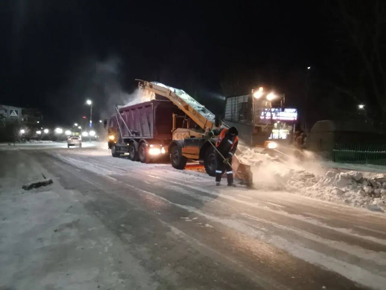 В ночь с 11 по 12 января снегоуборочные комплексы убирали снег с проспекта Строителей, улиц Конечная и Ключевская. В общем за ночь с этих улиц вывезено 300 кубометров снега.