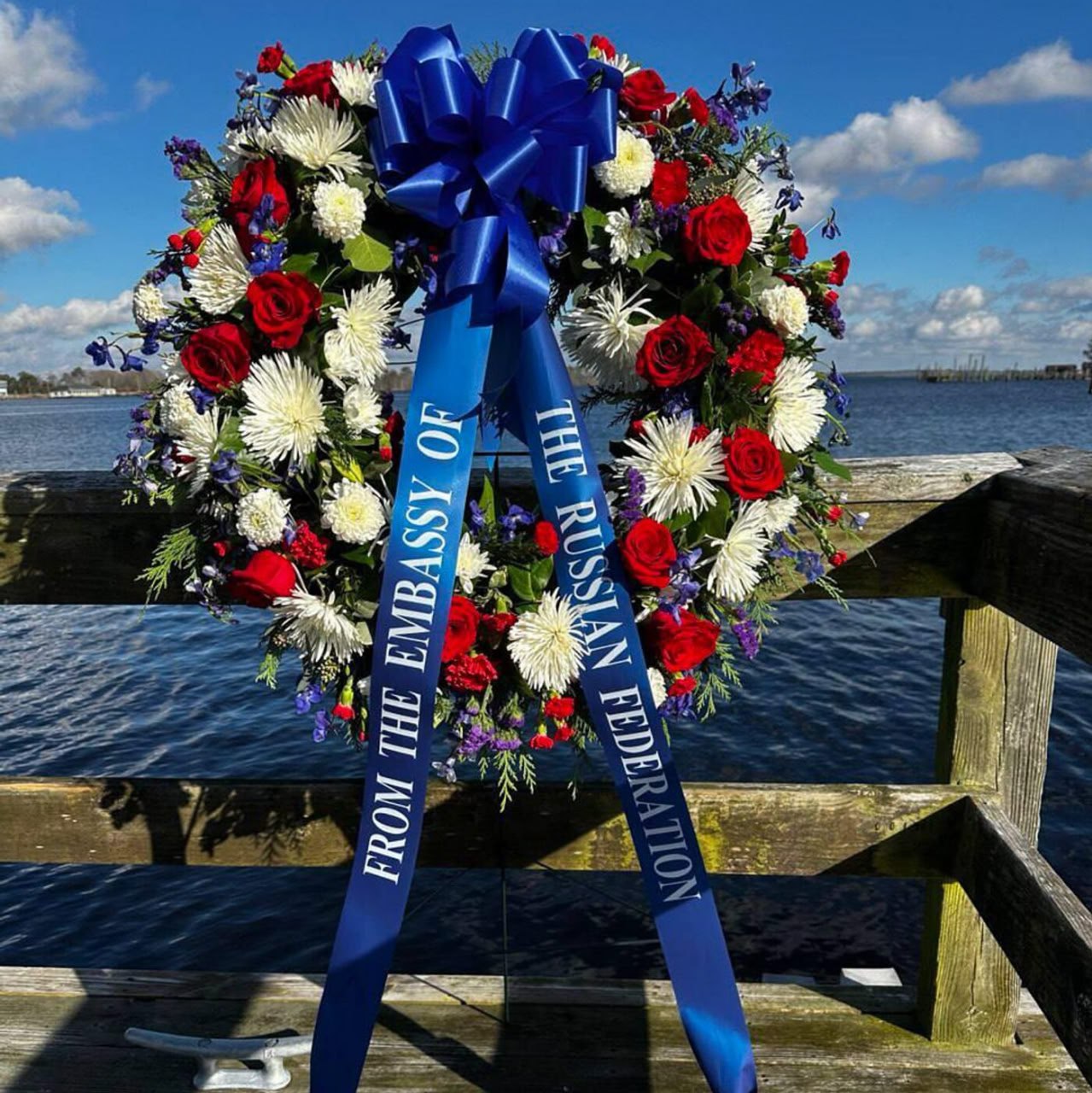 В реку, где произошла трагедия, делегации двух стран возложили венок и красные гвоздики. Погибшим членам экипажа советским летчикам капитанам Николаю Чикову и Владимиру Левину, лейтенантам Дмитрию Медведеву и Афанасию Бородину, а также радисту канадских королевских ВВС лейтенанту Питеру Натаросу были оказаны воинские почести.