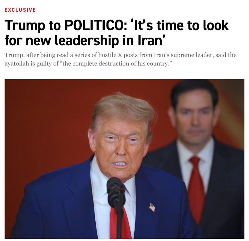 Трамп напрямую атаковал верховного лидера Ирана Али Хаменеи, заявив, что тот как руководитель «убивал тысячи людей ради удержания контроля». Он назвал Хаменеи «больным человеком», а сам Иран охарактеризовал как «худшее место для жизни в мире из-за плохого руководства».