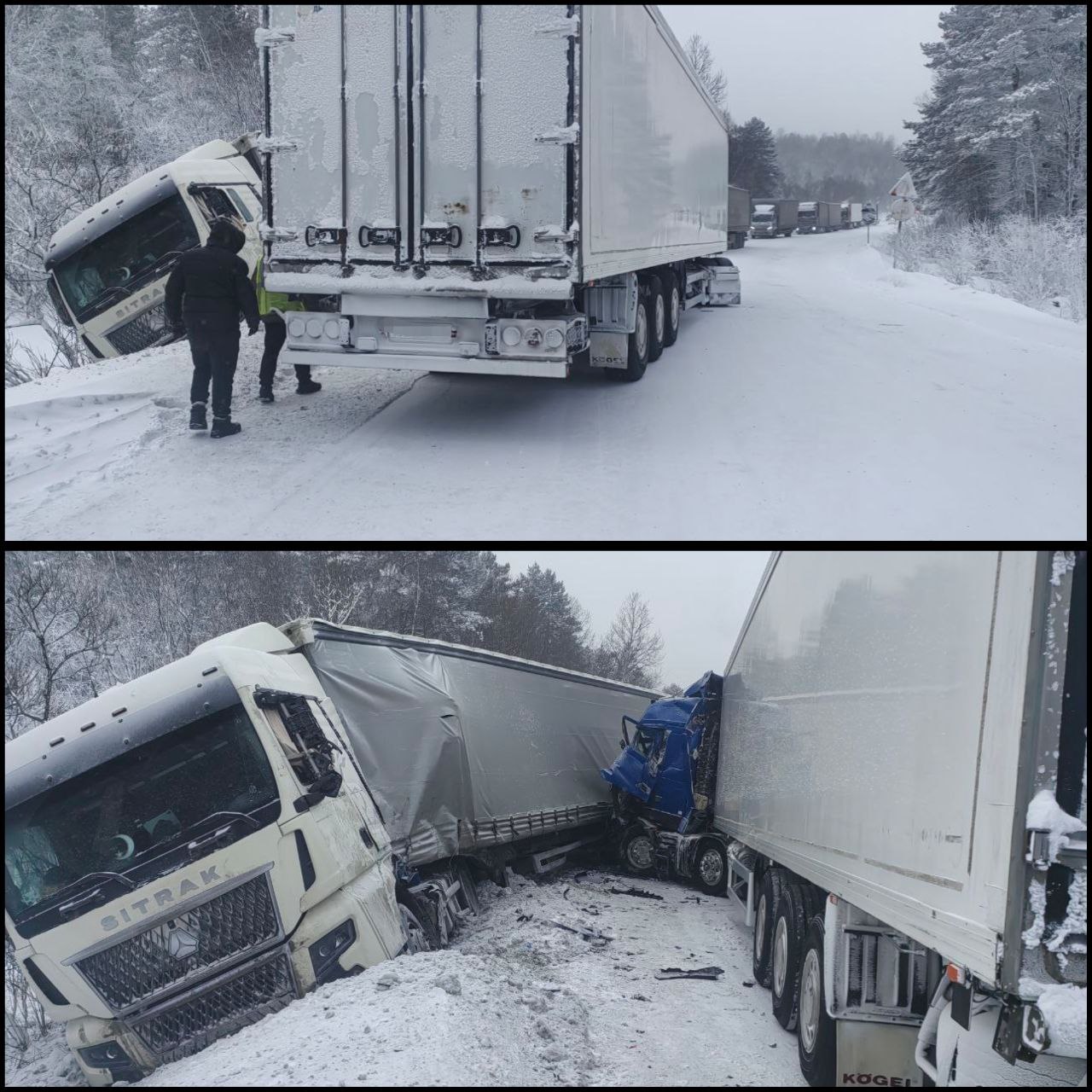 Авария произошла в районе Клюевки на 270 км автодороги. Предварительно, водитель фуры «Ситрак» ехал по встречной полосе и столкнулся с другим большегрузом. От удара «Ситрак» улетел в кювет.