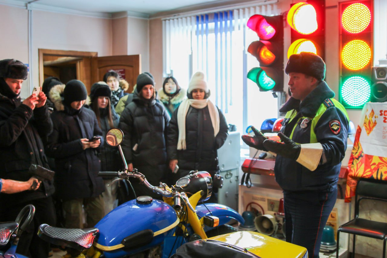 Экскурсия стартовала с посещения МРЭО ГИБДД МВД по Республике Бурятия. Старший инспектор по особым поручениям Дмитрий Кожухов подробно рассказал о процедуре сдачи экзамена на получение водительского удостоверения, порядке постановки транспортных средств на учёт. Также участники посетили музей региональной Госавтоинспекции, где ознакомились с историческими экспонатами.
