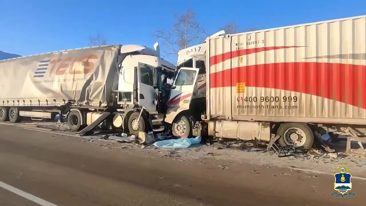 По предварительным данным, около 4 ночи произошло столкновение двух грузовых автомобилей.