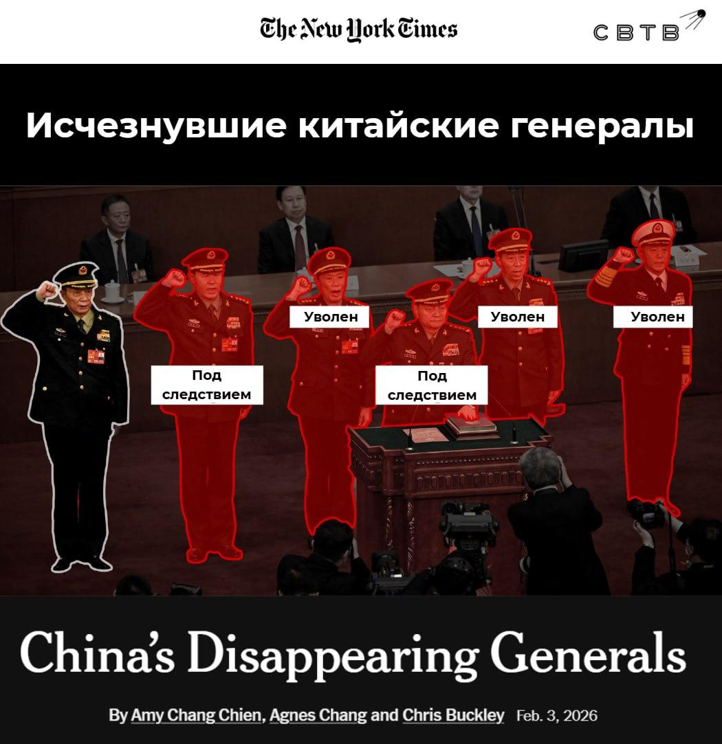 Посадки в высшем военном руководстве КНР начались в 2023 году из-за утраты доверия и подозрений в коррупции. На сегодняшний день из 30 высокопоставленных адмиралов и генералов на своих должностях остались лишь семь человек.